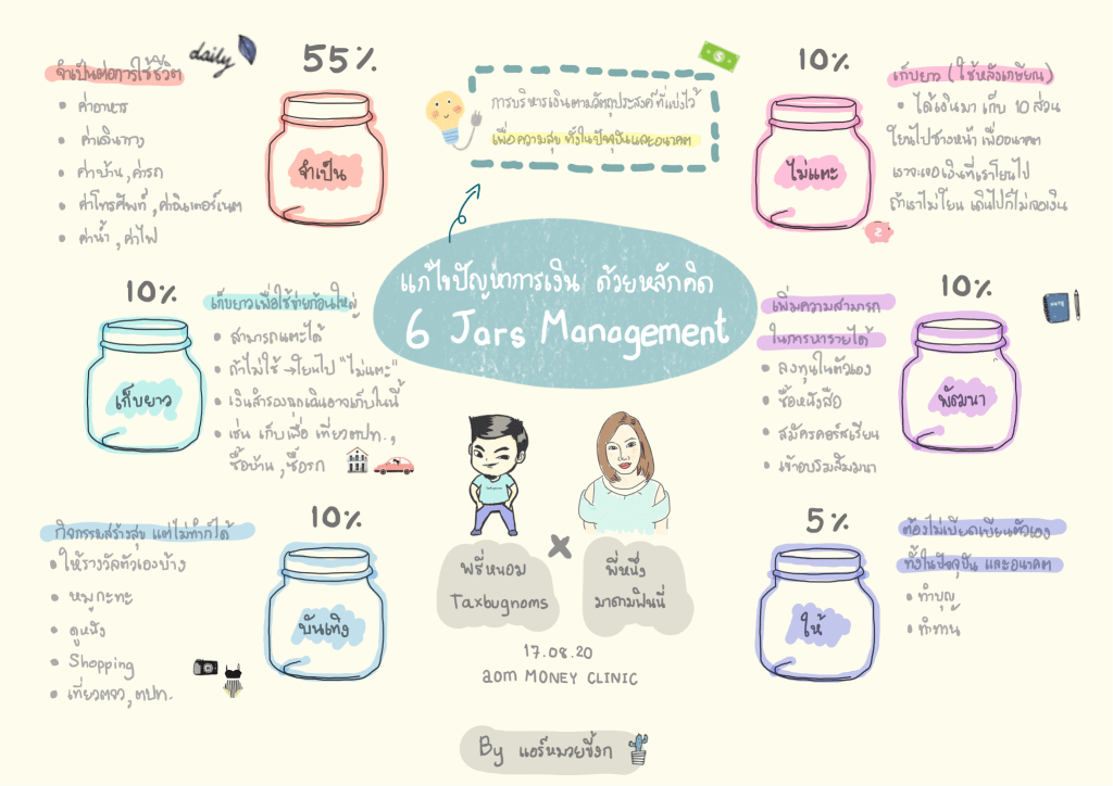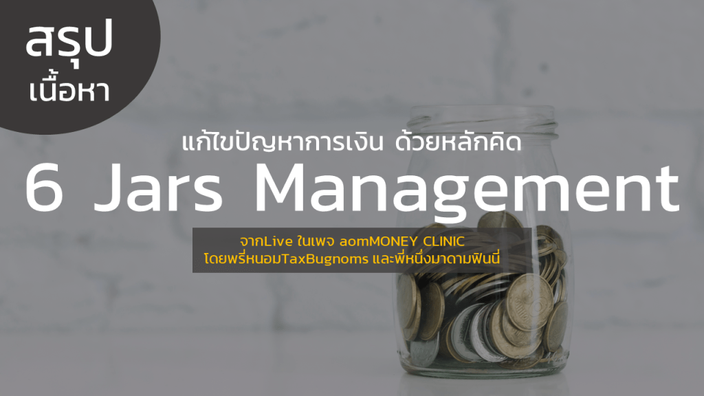 สวัสดีค่าทุกคน เมื่อวาน(17.08.20) แอดได้มีโอกาสฟัง Live ในหัวข้อ “แก้ไขปัญหาการเงินด้วยหลักคิด 6 Jars Management” จาก aomMONEYCLINIC ซึ่งเป็นการพูดคุยกันระหว่าง พรี่หนอมTax Guru ชื่อดังเจ้าของเพจ Taxbugnoms และพี่หนึ่ง aomMONEY Guru จากเพจมาดามฟินนี่ วันนี้เลยอยากจะมาสรุปประเด็นที่น่าสนใจให้ทุกคนได้อ่านกันค่า