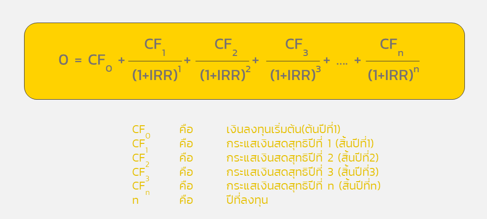 ดังนั้น สูตรในการคำนวณหาค่า IRR ก็คือ